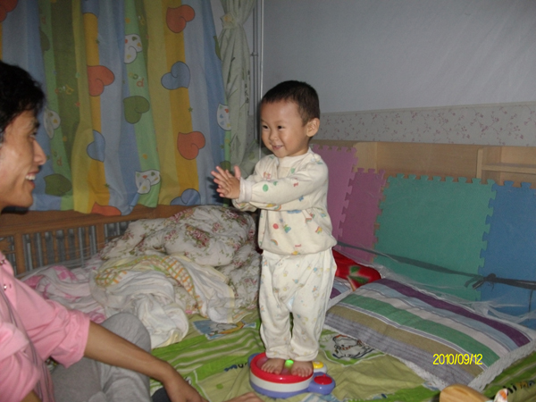 小家伙似乎和我、笑笑爸相当不一样的地方就是,多少似乎艺术细胞比我们好很多。我跟笑笑爸都是一说唱歌就头大的主,可笑笑不一样,听着音乐还会自己打拍子, 甚至在去年12月我在唱“咪咿咿~吗啊啊~”的时候跟着一起唱了——当时就被雷倒了!
