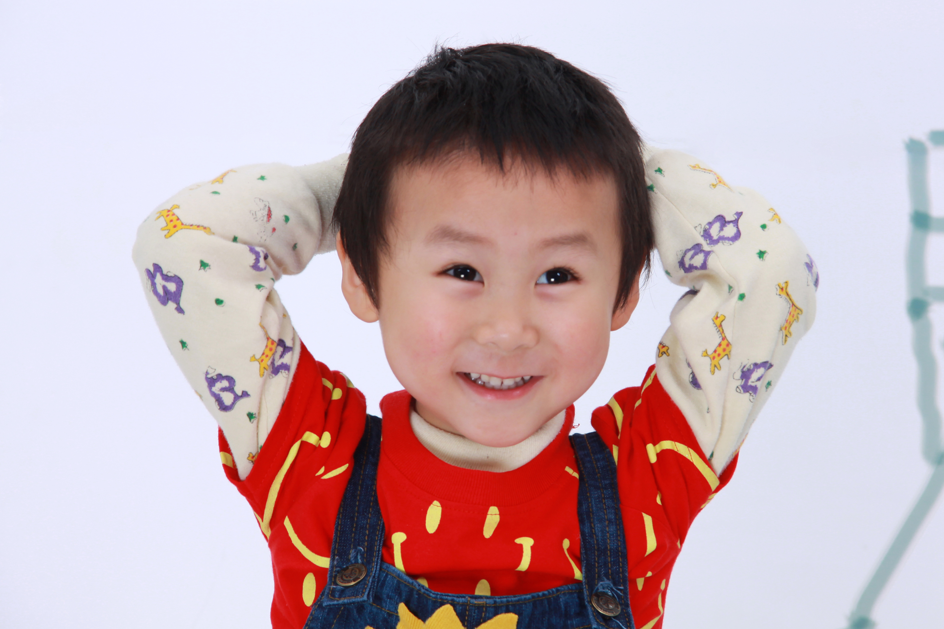 本来想让小朋友把里面的秋衣脱掉再照的,小朋友说什么都不同意,只好成这样了……