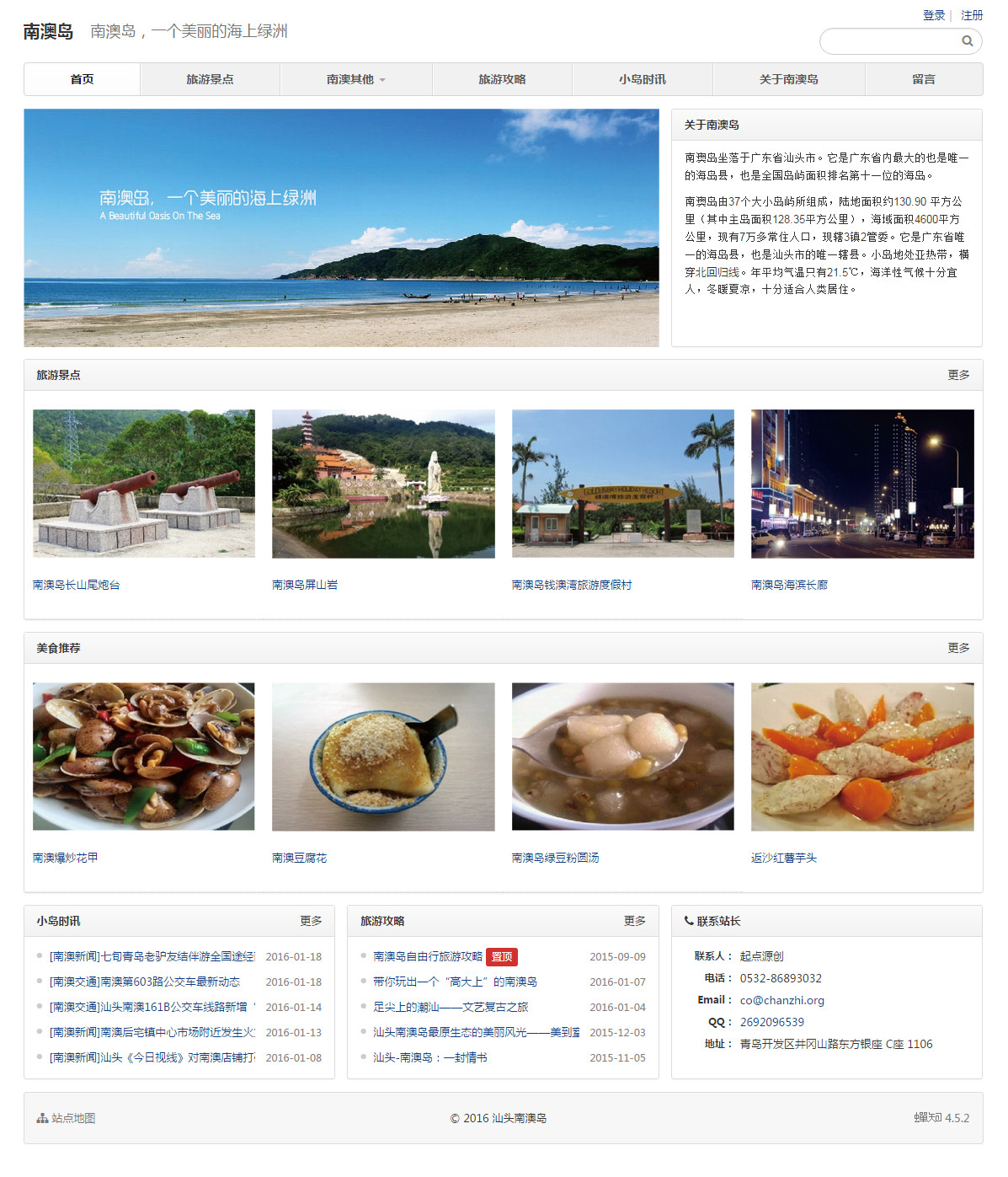 2、 南澳岛旅游网 南澳岛坐落于广东省汕头市。它是广东省内最大的也是唯一的海岛县,也是全国岛屿面积排名第十一位的海岛。这个网站是出生和成长在这个岛的同事做的,饱含她对这个地方的浓厚情感。网站全面包含了广东省汕头市南澳岛的旅游相关信息,包括南澳岛旅游景点介绍、南澳美食推荐、南澳住宿推荐、南澳特产推荐、南澳旅游攻略、南澳旅游线路推荐、南澳的最新动态等内容。目前这个岛是海岛旅游的热门景点,有想去做海岛旅游的,大力推荐去这里看看!