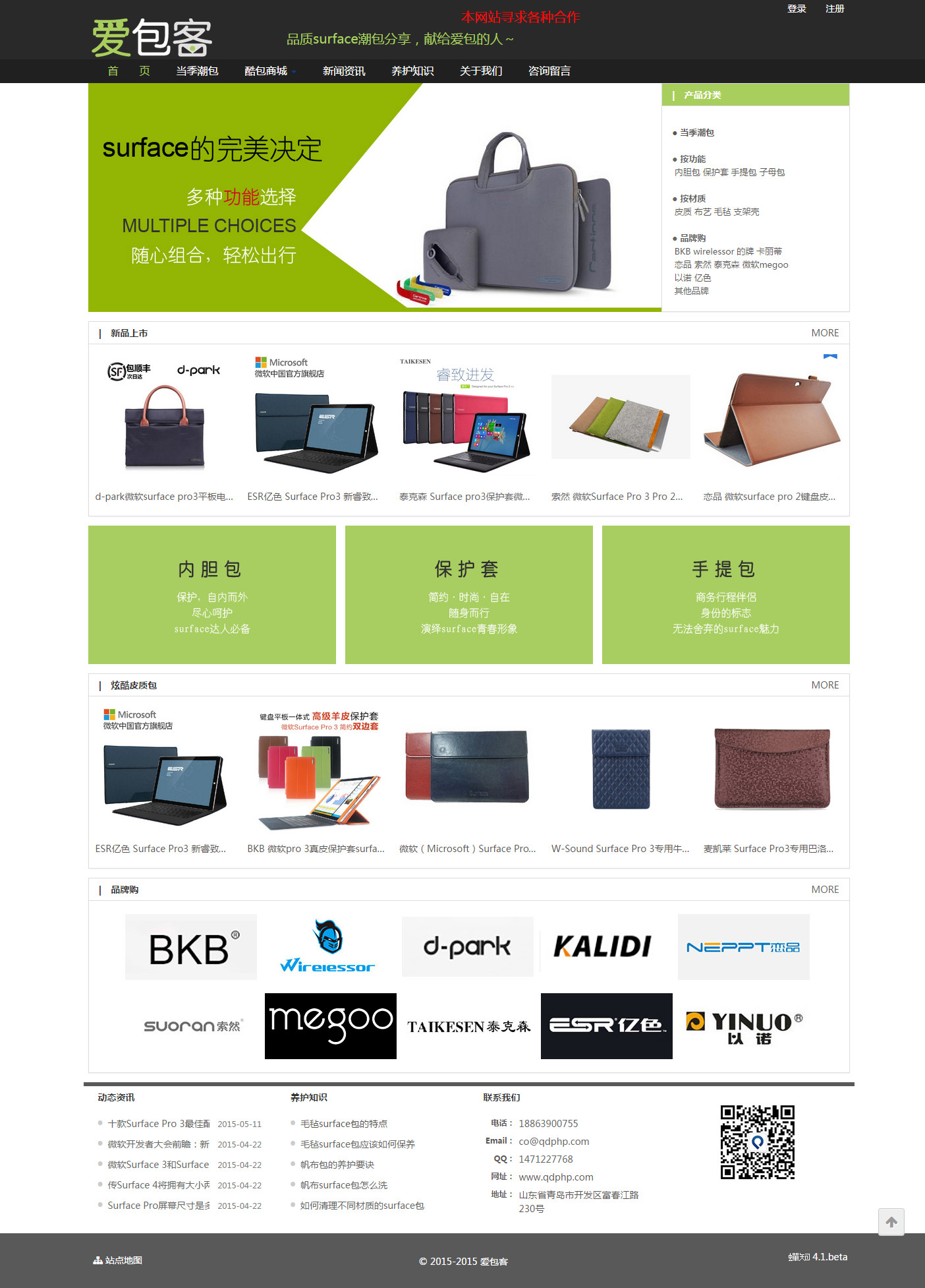 1、 爱包客 老公搞了个 surface 来移动办公,大加赞赏之余,又跑到网上搜 surface 的包,发现相关的信息太分散了,就说,我们搞个专门的 surface 包的品牌站!于是这个站就专门提供品牌 surface 包资讯、养护知识及购买信息,包括 surface 保护套、保护壳、手提包等品类,汇聚了比较全面、专业、新潮的 surface 保养知识及购买指导。