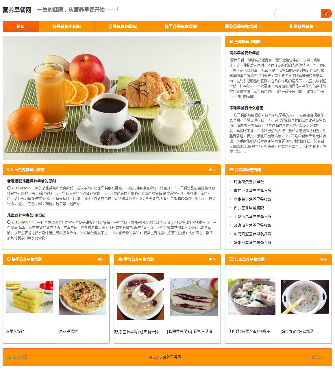 4、 营养早餐网 早餐吃什么?这个问题我们纠结了很多次,尤其是家里有个挑剔小孩的时候,头更大!所以,营养早餐网就诞生了!营养早餐网专门收集营养早餐搭配方法、营养早餐食谱,提供营养早餐的大量做法,特别关注儿童营养早餐,提供各种营养早餐的知识。早上不知道做什么吃的时候,可以来找找灵感。:)